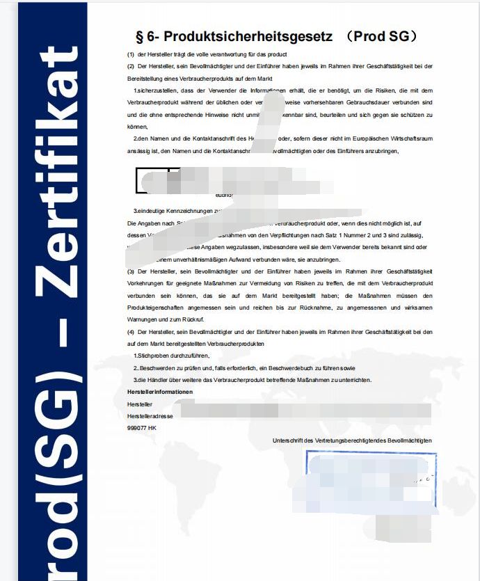 2011年12月1日,德國新《產品安全法案》(ProdSG)正式生效,是GS標志認證的依據,替換先前的GPSG。